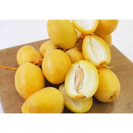 Kurma muda kuning adalah buah kurma yang hampir matang, memiliki tekstur lebih segar, dan rasanya tidak semanis kurma kering. Buah ini kaya akan antioksidan, serat, zat besi, dan mineral penting lainnya yang bermanfaat untuk kesehatan secara umum, seperti meningkatkan kesuburan, melancarkan pencernaan, menjaga kesehatan tulang, dan menambah energi.